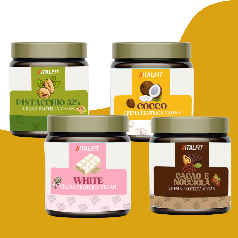 BOX CREME PROTEICHE VEGANE – 4 GUSTI GOLOSI DA 200 G