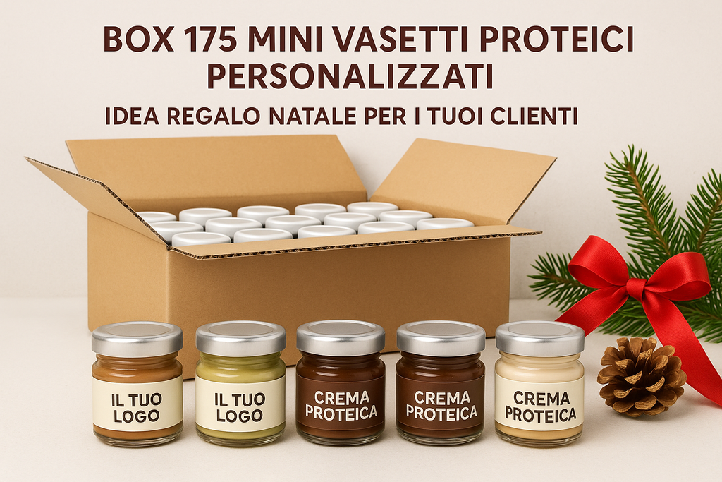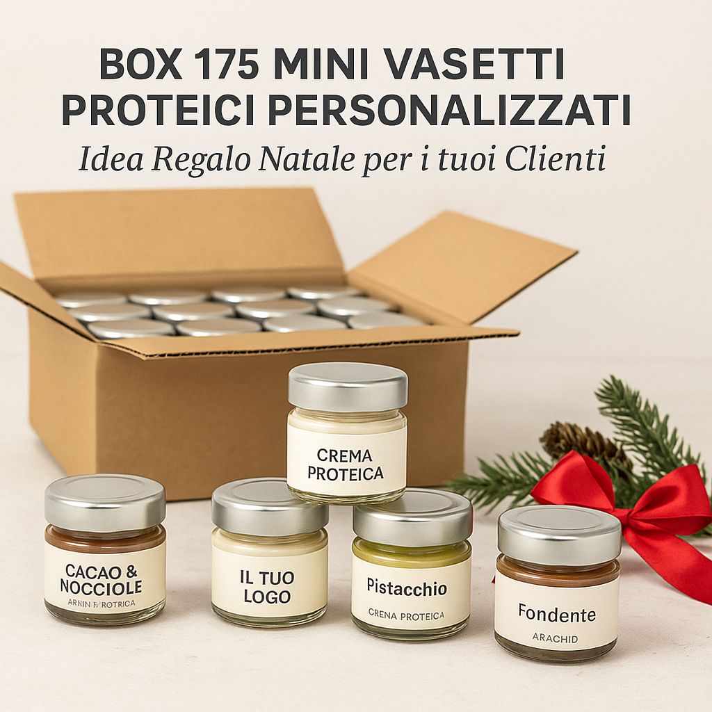 👉Sorprendi i tuoi clienti con un regalo unico e salutare: 175 mini vasetti proteici da 30 g, in 5 gusti assortiti, personalizzati con il tuo logo. Perfetti per Natale e occasioni speciali.